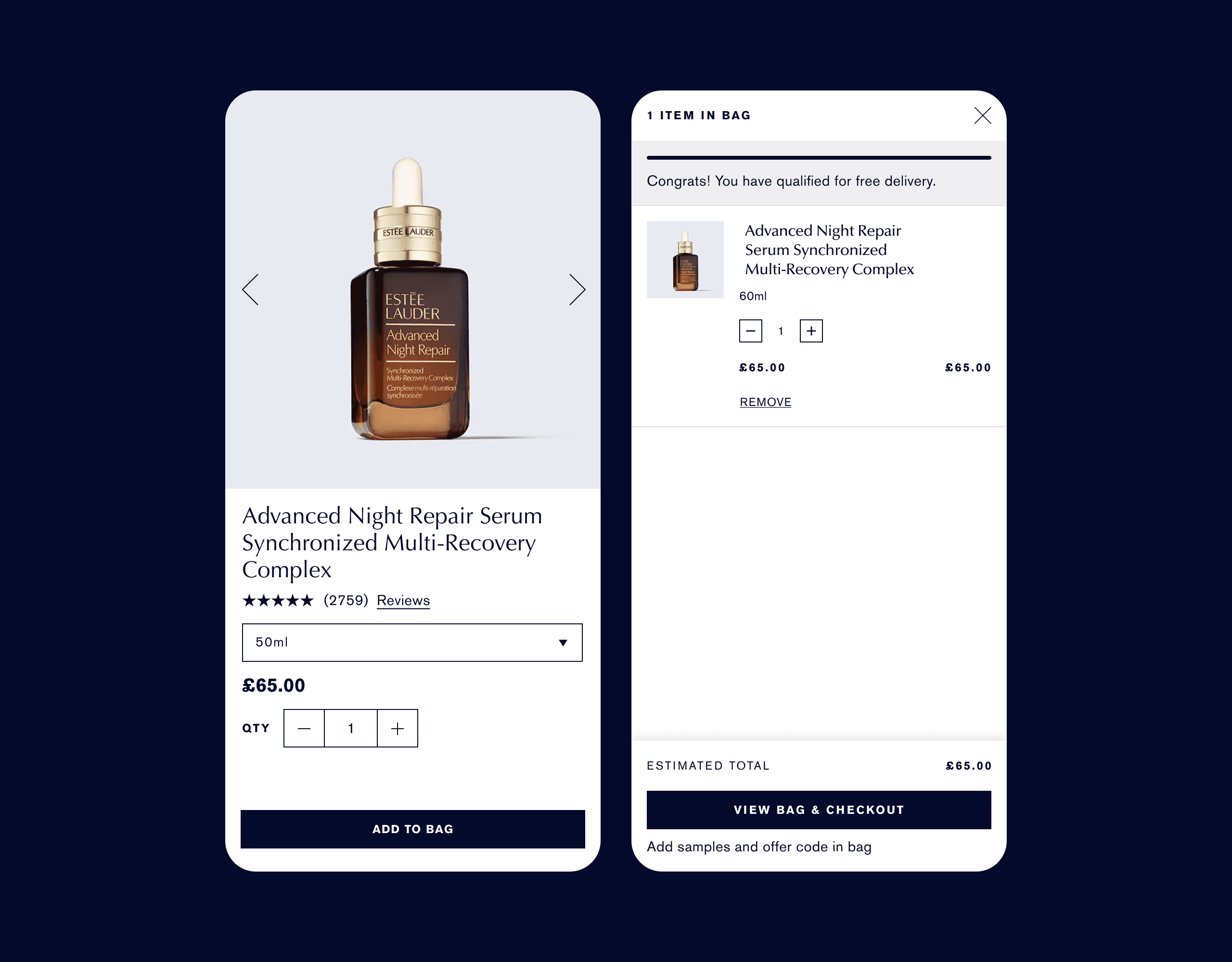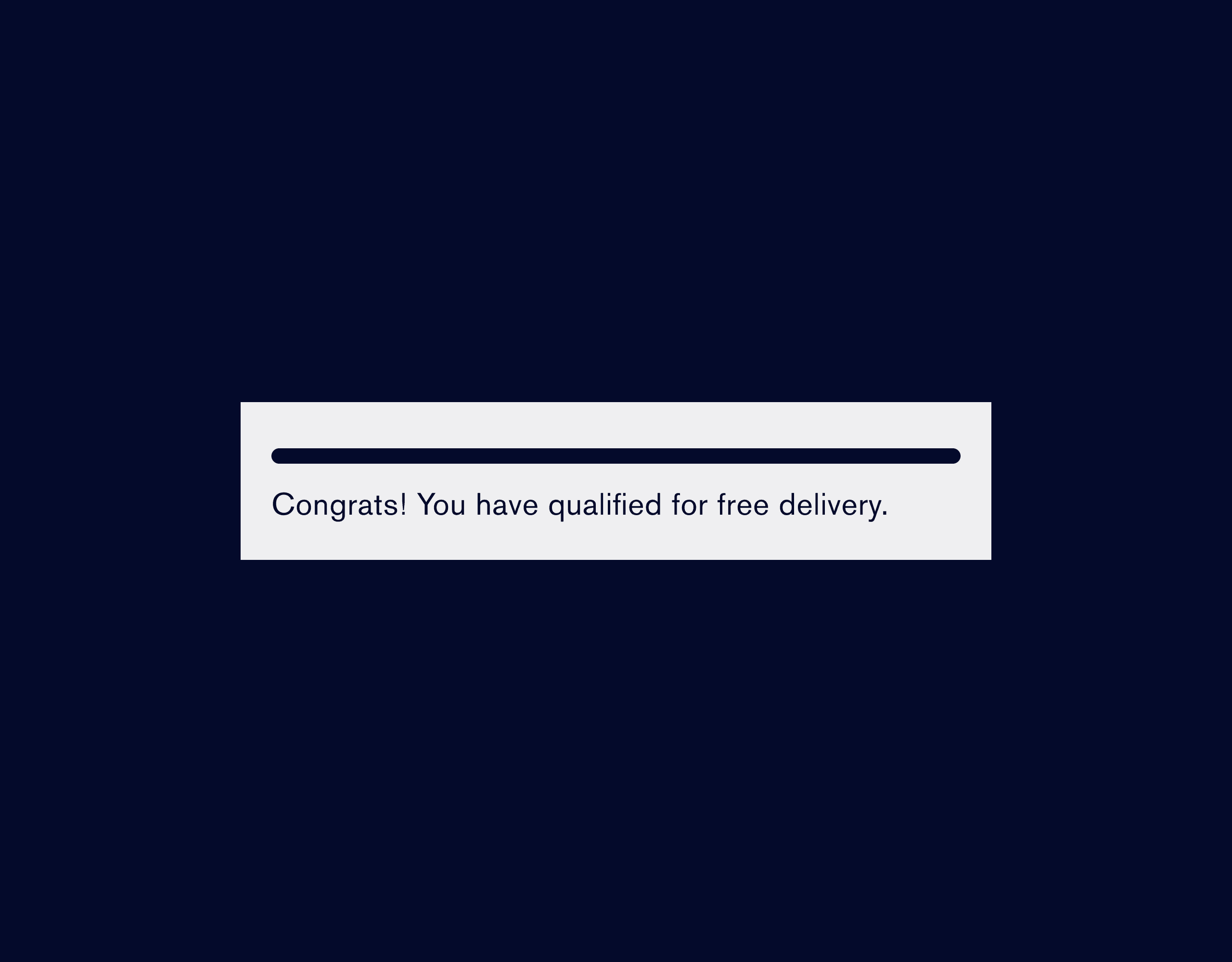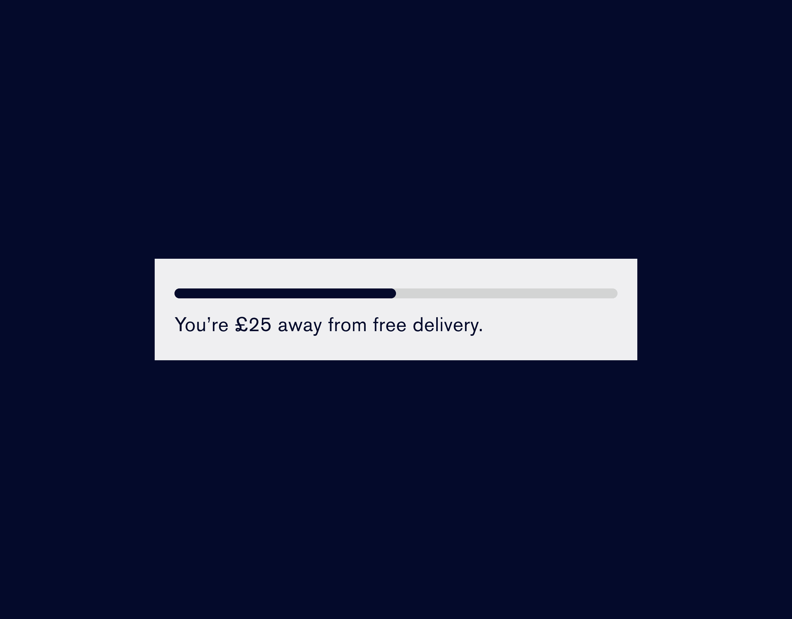 To eliminate user guesswork, I designed a simple, high-visibility progress bar within the cart drawer. It gives users instant clarity on how much more they need to spend to qualify for free delivery, reducing friction and creating a more motivating, goal-oriented checkout experience. Initially launched as an A/B test, the component delivered a positive increase in average order value and an uplift in conversion rate versus the control. The results validated the approach and led to the progress bar being earmarked for adoption across multiple brands, with potential to extend the same logic to highlight eligibility for offers and spend-based promotions.